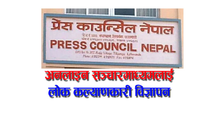 काठमाण्डौं/ सरकारले अनलाइन सञ्चारमाध्यमलाई लोक कल्याणकारी विज्ञापन उपलब्ध गराउने तयारी थालेको छ । सञ्चारगृहका रूपमा व्यवस्थित तरिकाले चलाइएका अनलाइन सञ्चारमाध्यमलाई वर्गीकरण गरेर विज्ञापन उपलब्ध गराउन अध्ययन थालिएको प्रेस काउन्सिल नेपालले जनाएको छ ।