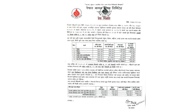 डिजेलको मूल्य भने प्रतिलिटर २ पैसाले बढेर आएको छ। यस्तै, मट्टितेलको मूल्य लिटरमा २२ रूपैयाँ १९ पैसाले बढेर आउँदा हवाई इन्धनको मूल्य प्रतिलिटर ४ रुपैयाँ २३ पैसाले बढेर आएको निगमले जनाएको छ । लगातार बढिरहेको डिजेल र पेट्रोलको मूल्यवृद्धि रोकिए पनि खाना पकाउने एलपी ग्यासको मूल्य भने सिलिन्डरमै २७३ रुपैयाँ ३८ पैसाले बढेर आएको निगमले जनाएको छ ।