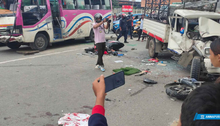 मोटरसाइकल र स्कुटरलाई ठक्कर दिएको हो।